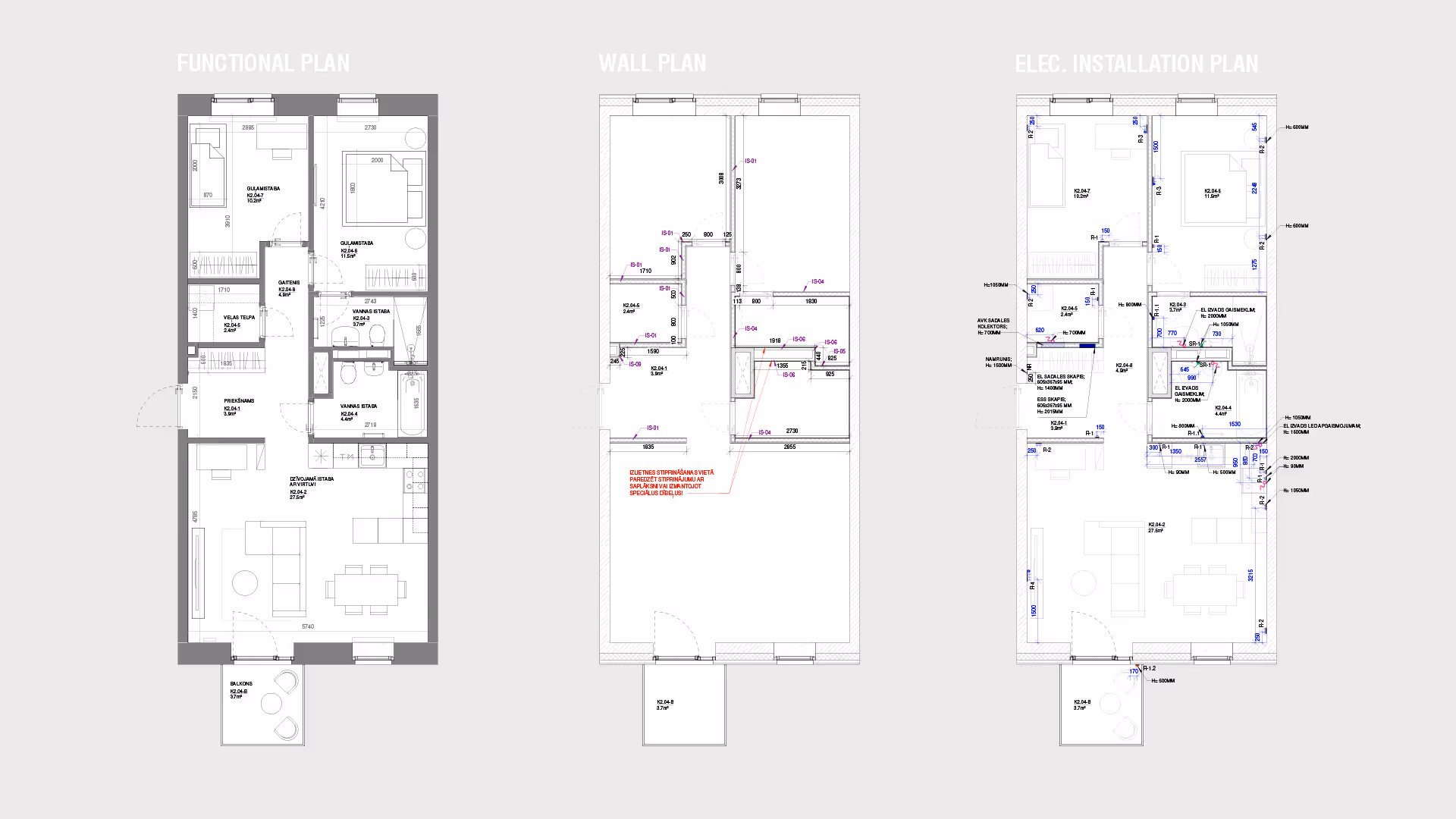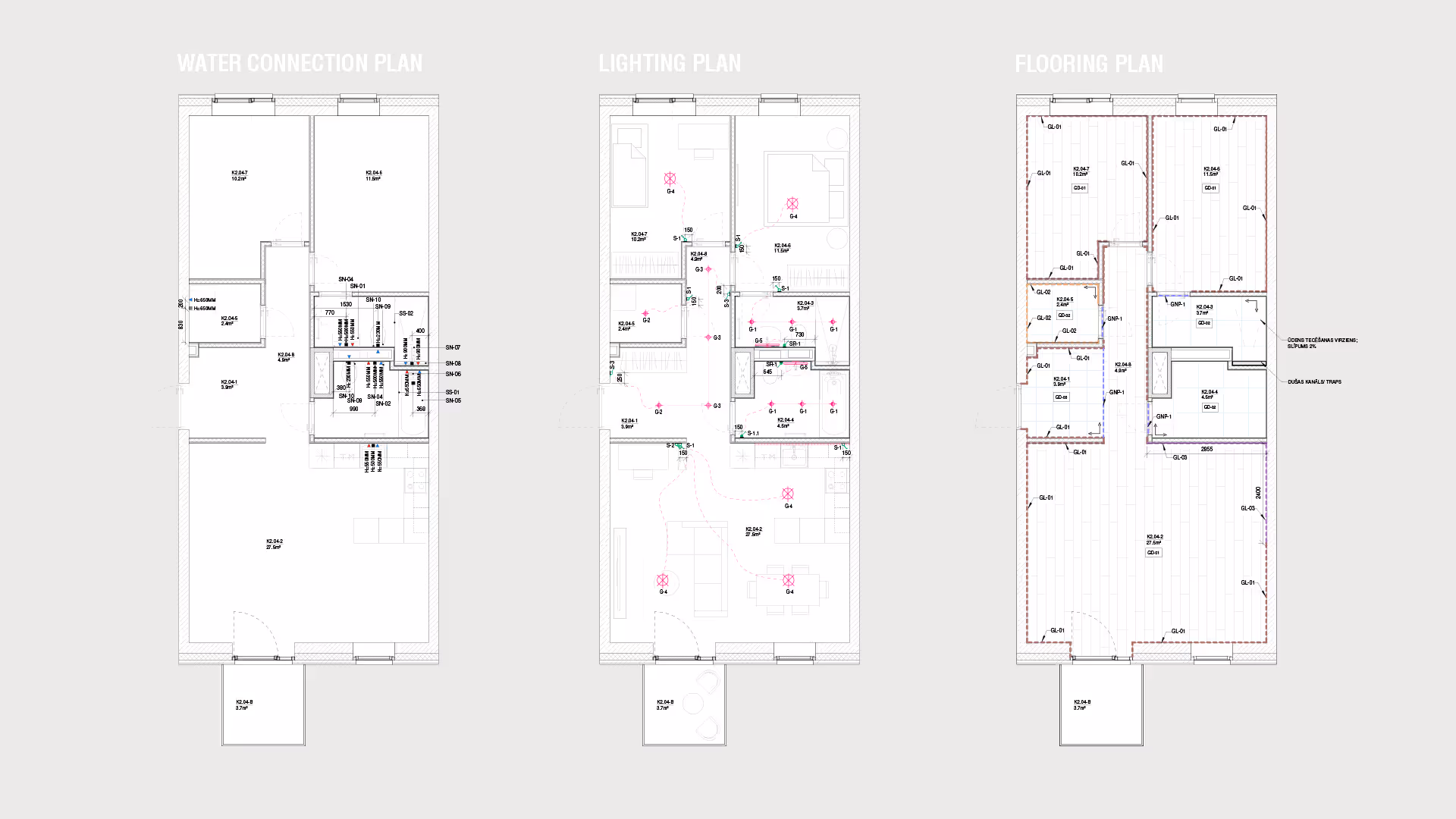 This housing project offers a fully developed interior technical design for demo apartments, covering all aspects of interior planning—including functional layouts, flooring plans, wall configurations, electrical installations, water connection plans, lighting plans, and other design details.