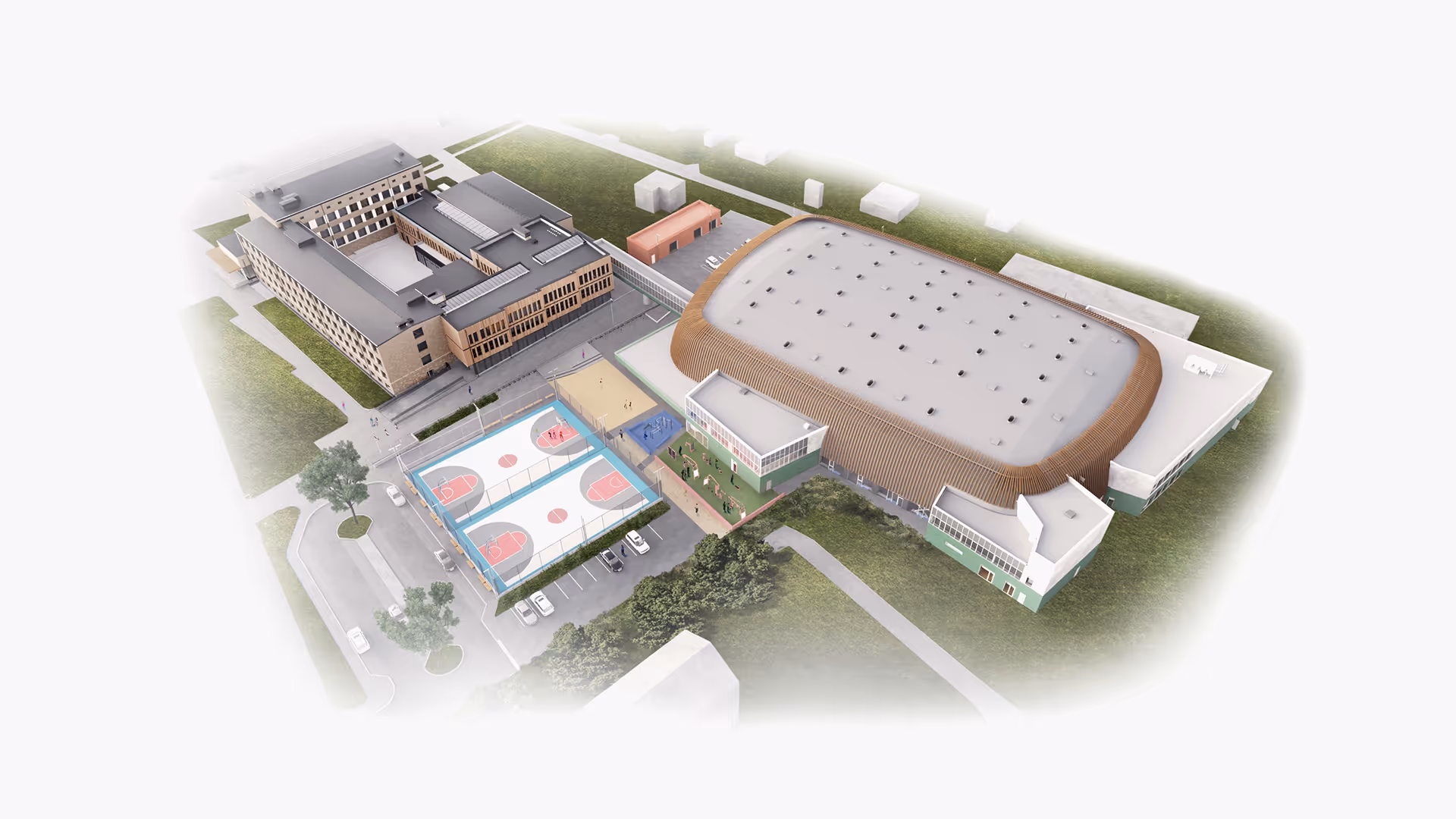 The project proposes the development of a new sports arena primarily designed to host regional and national athletics competitions. The surrounding area will be landscaped to include an outdoor sports court, a gathering space, and parking facilities.
